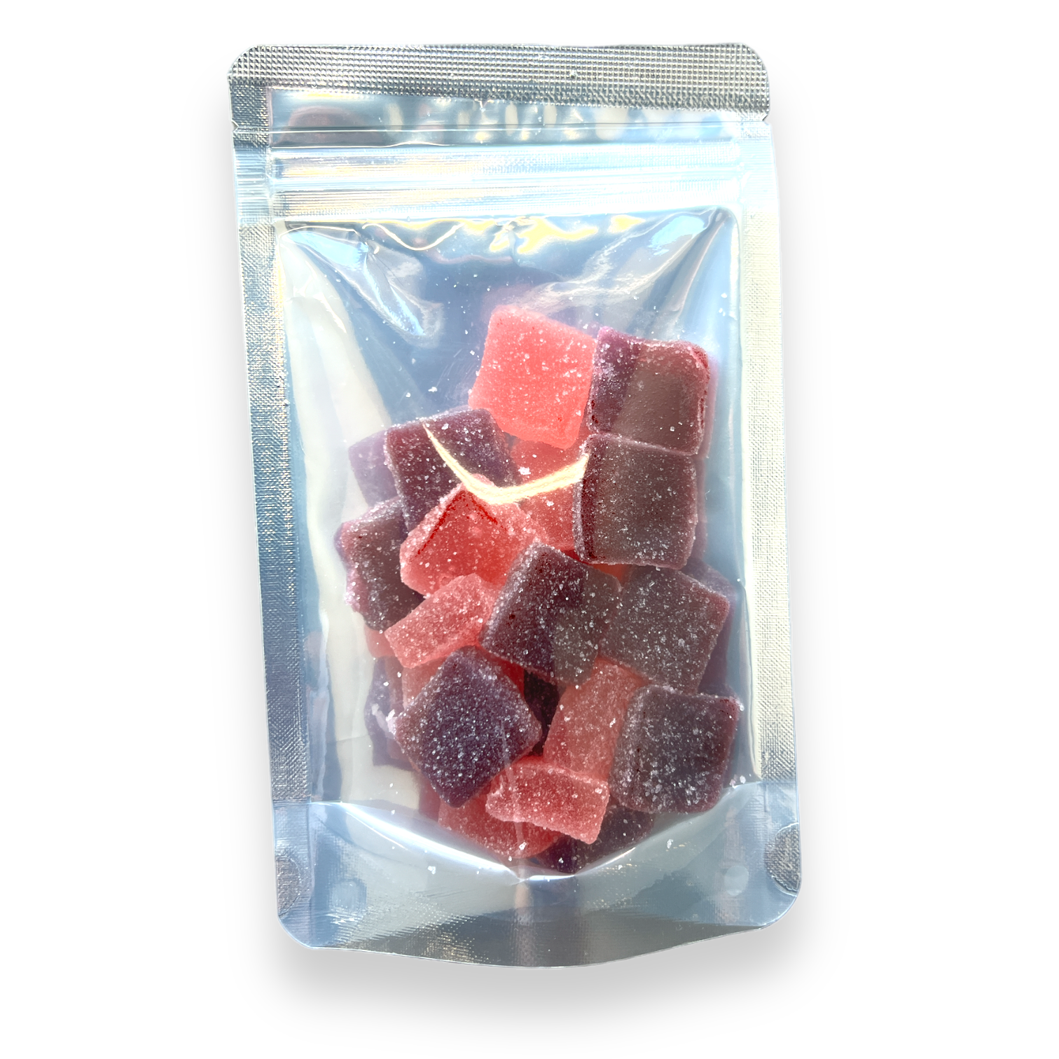 Ingredients: Cane Sugar, Light Corn Syrup Corn Syrup: Salt, Vanilla, Water, Organic Apple Pectin, Citric Acid, ADM, Natural Flavors, 100% Coconut MCT Oil, Fruit And Vegetable Extract Color, CBG [Cannabigerol] Isolate.