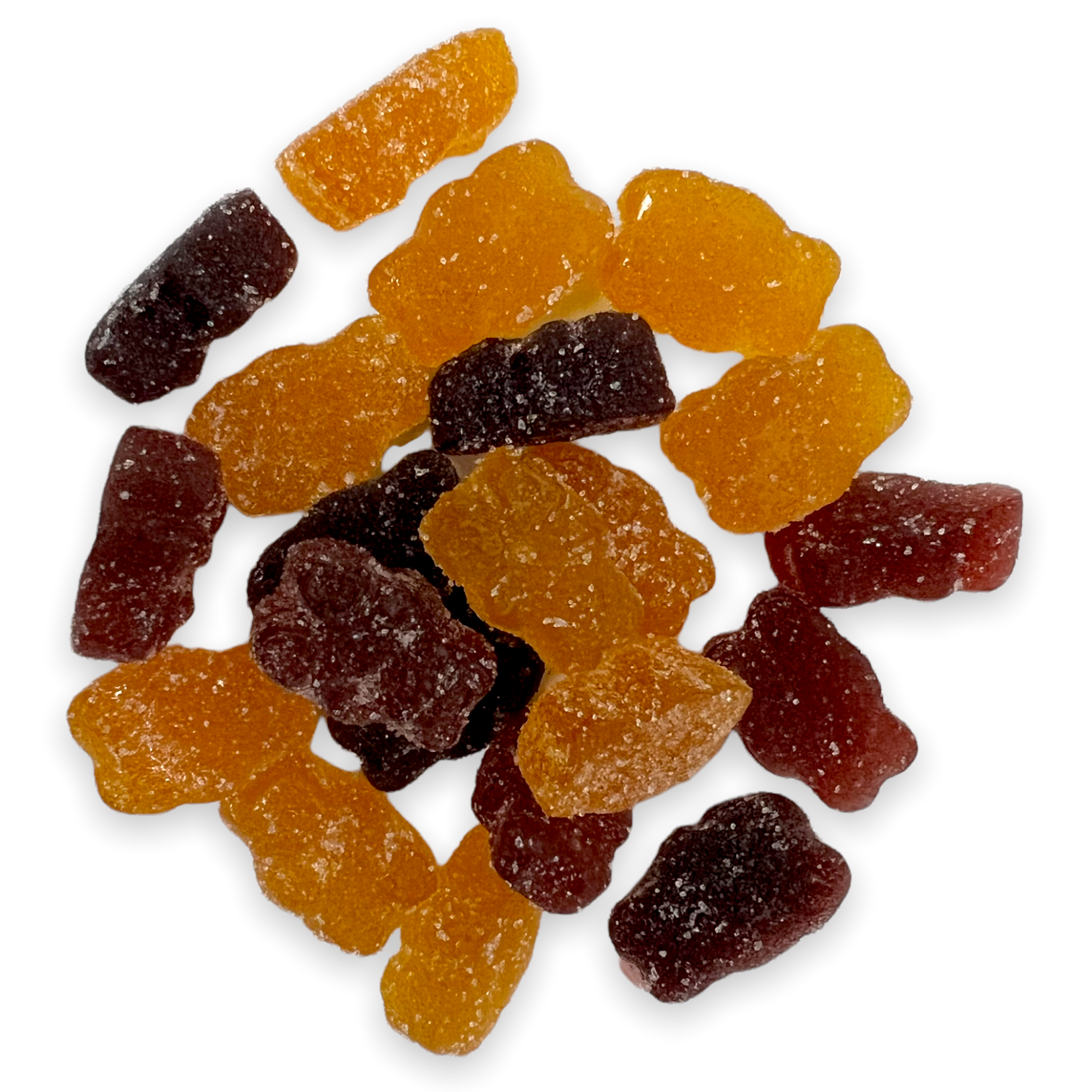Ingredients: organic tapioca syrup, organic cane sugar, distilled H2O, apple pectin, natural flavors and colors, non-gmo citric acid, organic fruit flavors, malic acid, hemp-derived cannabinoid-rich distillate.