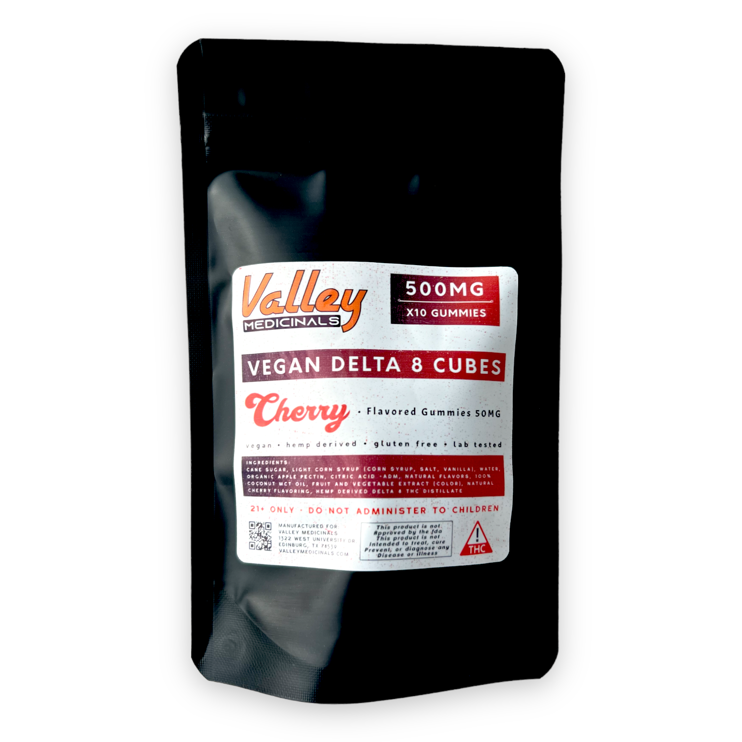 Valley Medicinals’ 50MG Cherry D8 THC Vegan Gummies are perfect for insomnia sufferers. With high potency levels and a delicious cherry flavor, these vegan gummies can help you achieve a peaceful night’s sleep. Novice users should start with a lower dosage or split the gummy in half due to their potency.